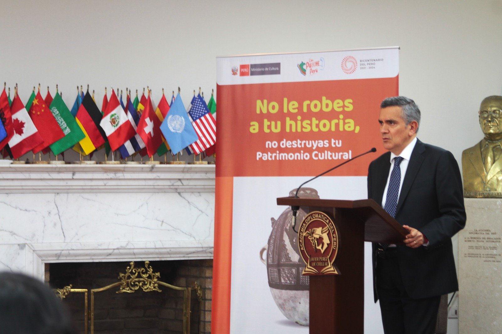 El Director de la ADP, Embajador Julio Garro, resaltó el firme compromiso del Perú con los tratados internacionales suscritos en la materia y la importancia de las gestiones diplomáticas en la recuperación de bienes culturales de valor cultural e histórico para la memoria nacional.
